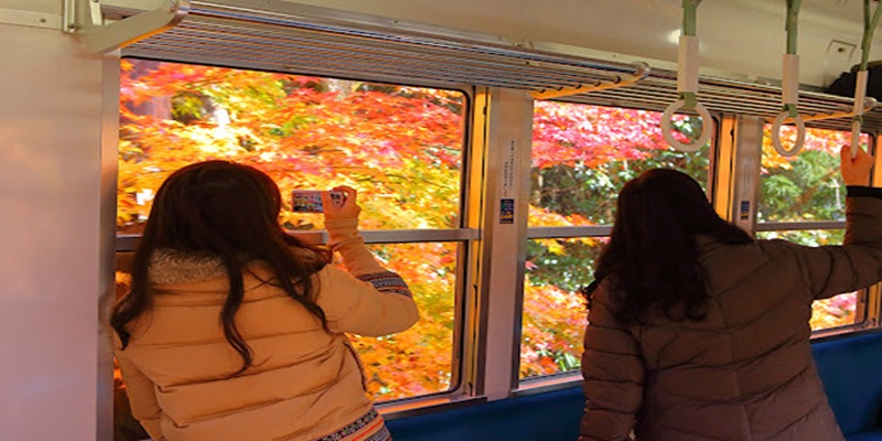 레트로한 열차를 타고 산간 지역으로 향하는 것만으로도 작은 여행을 떠나는 기분을 느낄 수 있습니다.