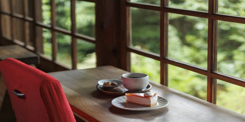 요시다야마 정상 근처에 위치한 모안은 다이쇼 시대의 다원을 개조한 카페입니다.